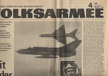 Inhalt u.a.: Mit der MiG auf Zielkurs, Stellungsbau, Transportflugzeuge der NVA, 16 Seiten, geknickt, kleine Spuren ca. 50 x 36 cm,