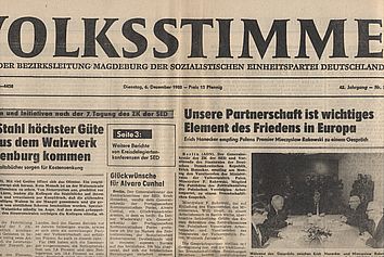 Zeitungen, DDR, Wendezeit Inhalt u.a.: Erich Honecker in Äthopien, Schild 84 in der CSSR Zeitung, 6 Seiten, gut mit Spuren, gefaltet ca. 50 x 36 cm,